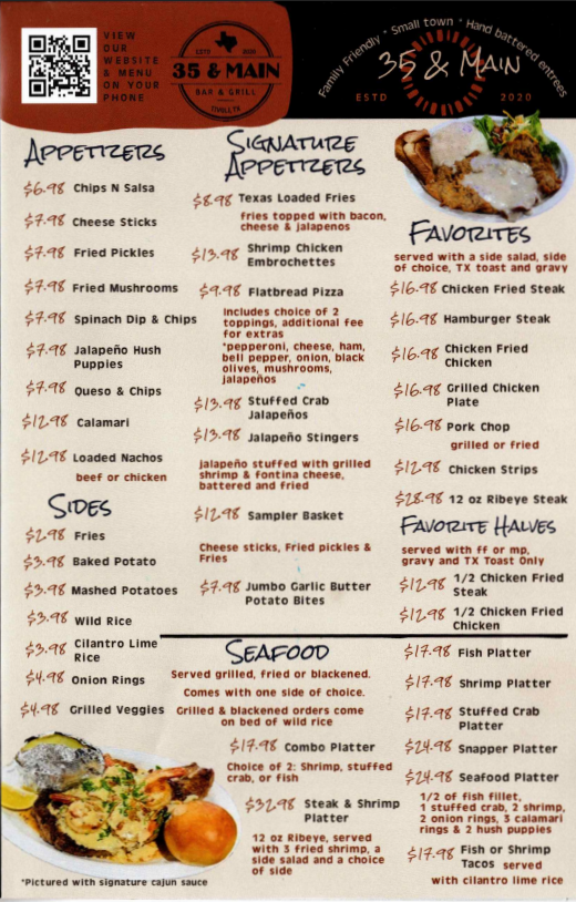 Take the stress out of your next family dinner by ordering from 35 & Main Bar and Grill. Whether you're craving a couple of drinks or a full meal, you're sure to leave our restaurant satisfied. You can also call in and order takeout food, or you can use the button below to order online.